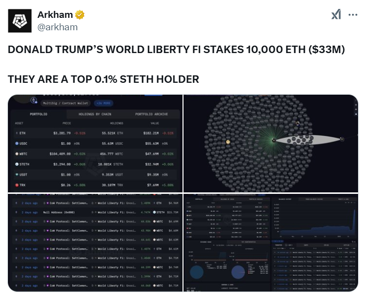트럼프의 WLFI, 대규모 이더리움 스테이킹으로 주목