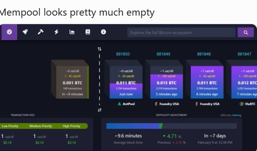 비트코인의 거래 대기 목록인 밈풀이 거의 비어 있는 상태가 되면서, 거래 활동이 최저 수준으로 감소했다는 분석이 나왔다.