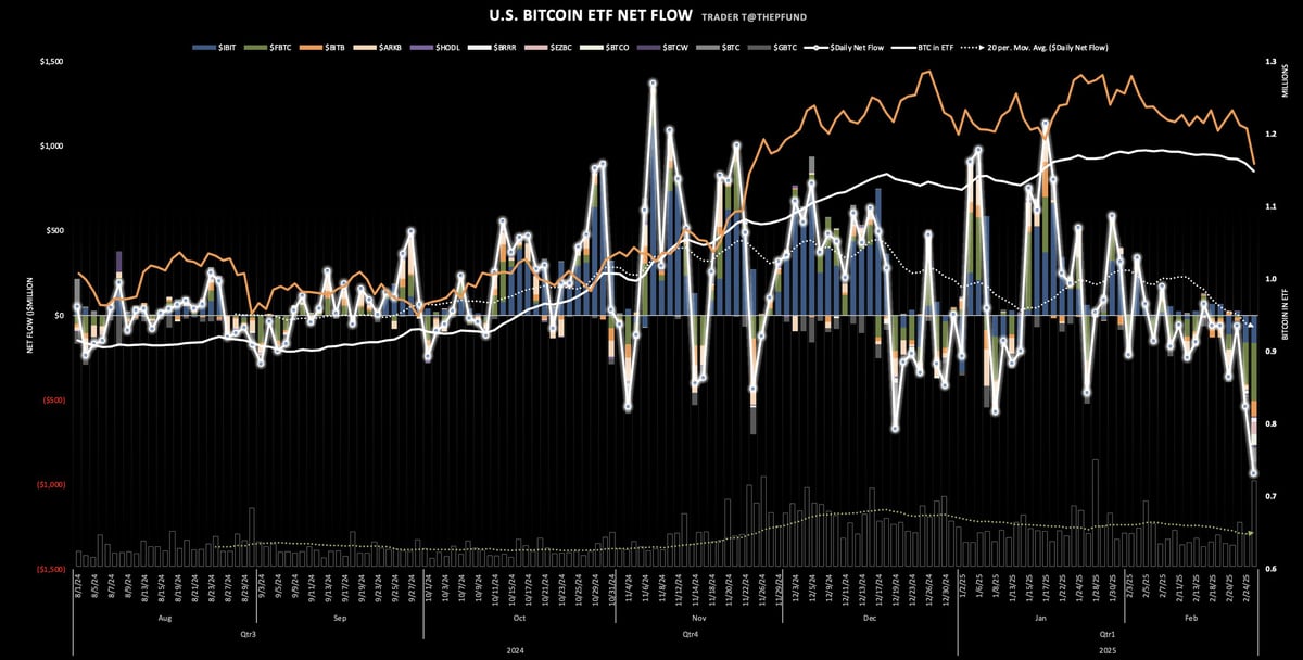 美 비트코인 ETF 유출량 (출처: X, @thepfund)