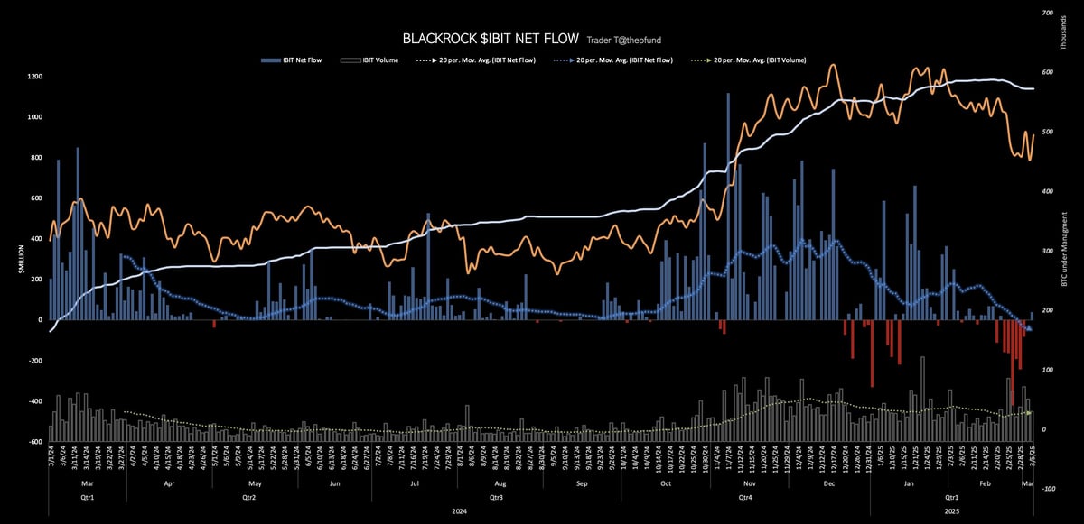 매수세로 전환한 블랙록의 BTC ETF(IBIT) (출처: @thepfund, X)