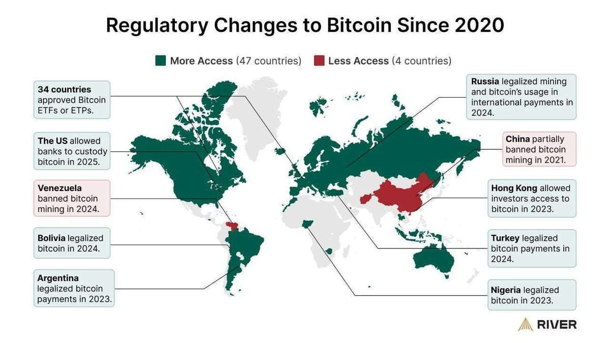 전 세계 암호화폐 규제 완화 추세…2020년 이후 47개국 규제 완화