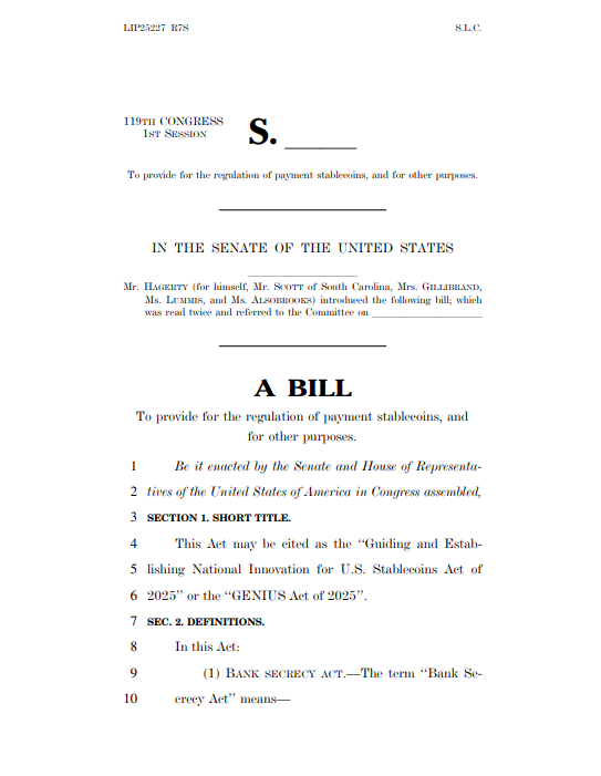미국 상원이 스테이블코인 규제 법안을 본격적으로 논의하며 금융 시장에 중요한 변화를 예고하고 있다. 13일(현지 시간) 상원 금융위원회는 공화당 주도로 마련된 미국 스테이블코인 혁신법(GENIUS Act) 수정안을 표결에 부칠 예정이다.