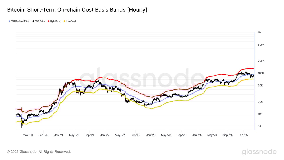 비트코인 단기 온체인 매수단가 밴드 (출처: Glassnode)