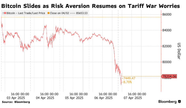 블룸버그 “비트코인, 美 관세폭탄에 결국 무릎…77,000달러 붕괴”