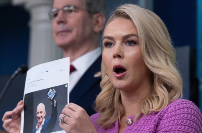 On 29th (local time) White House spokesperson Caroline Levitt criticizing Amazon's tariff increase pricing policy (Source: AP)