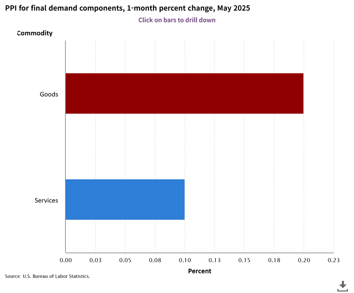 The May Producer Price Index (PPI) of the United States fell short of market expectations, sending signals that inflation pressure is gradually easing. The US Department of Labor announced on the 11th (local time) that the May PPI rose by 0.1% compared to the previous month. This result is below the market forecast of a 0.2% increase.