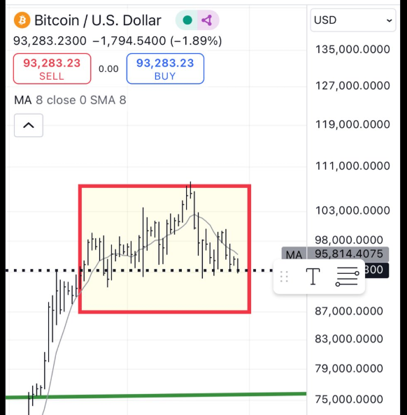 30일, 피터 브랜트는 자신의 X 계정을 통해 비트코인의 차트 패턴을 분석하며, '헤드 앤 숄더' 패턴에 따라 비트코인 가격이 7만8000달러까지 떨어질 수 있다고 전망했다.