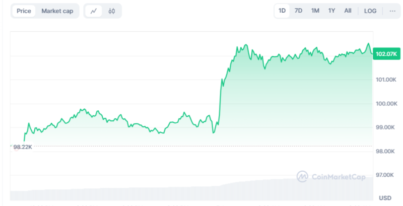 이번 10만 달러 돌파는 지난해 12월 20일 이후 17일 만에 처음으로 이루어진 기록으로, 7일 현재까지도 10만 달러 선을 유지 중이다.