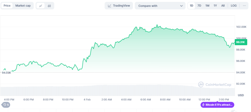현재 비트코인은 코인마켓캡 기준 오후 3시 약 9만9311달러에 거래되고 있다.