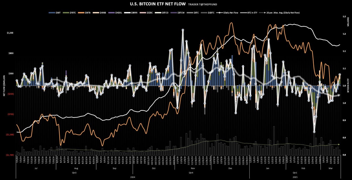 이날 모든 비트코인 ETF의 순유입 전환은 기관 투자자들의 관심이 다시 증가할 가능성을 시사하는 신호로 해석될 수 있다. 최근까지 ETF 시장은 2월 말부터 이어진 약 38억 달러 규모의 순유출로 인해 어려움을 겪었으며, BTC 가격도 8만 달러 선에서 횡보를 이어가고 있었다.