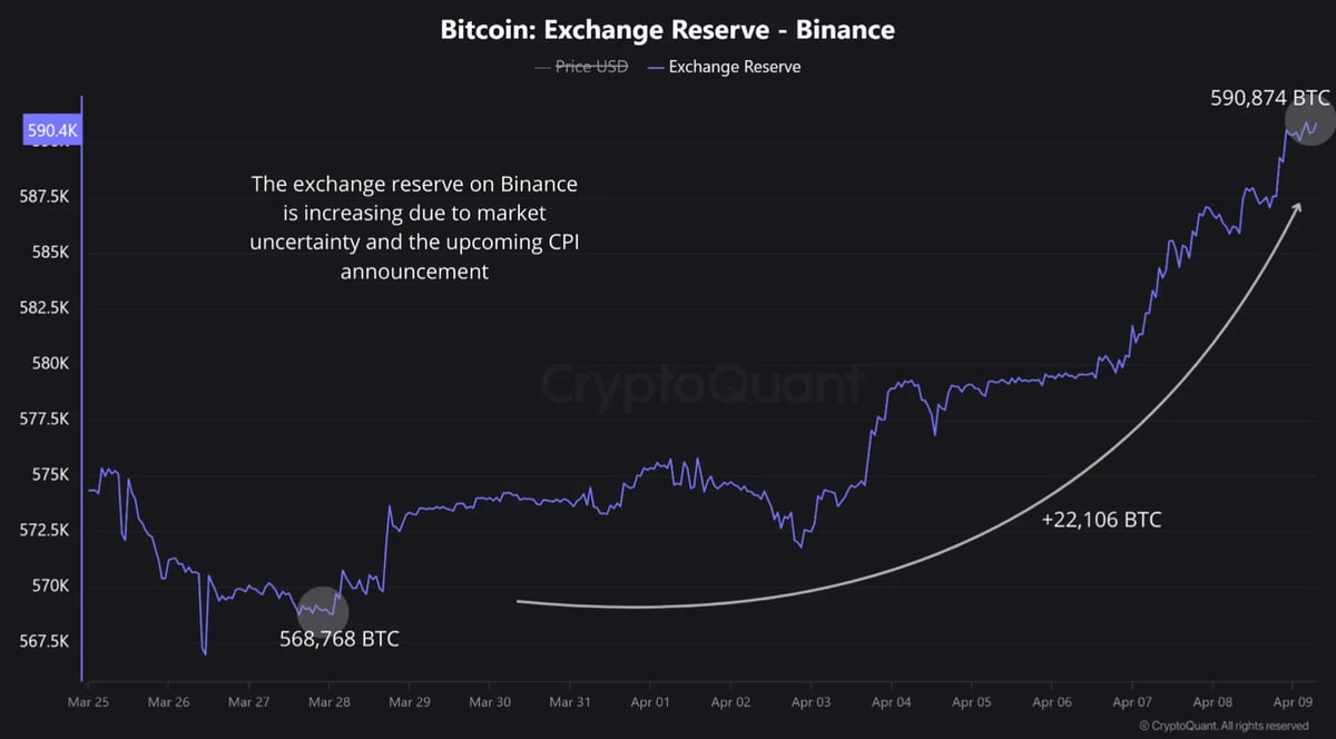 미국의 3월 소비자물가지수(CPI) 발표를 앞두고 비트코인이 대규모로 바이낸스로 이동하면서 암호화폐 시장의 급격한 변동 가능성에 대한 경고가 나오고 있다.