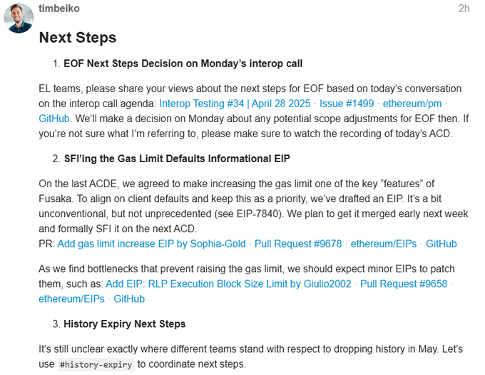 가스 한도 상향 포함한 푸사카 하드포크 주요 과제 (출처: @TimBeiko, X)