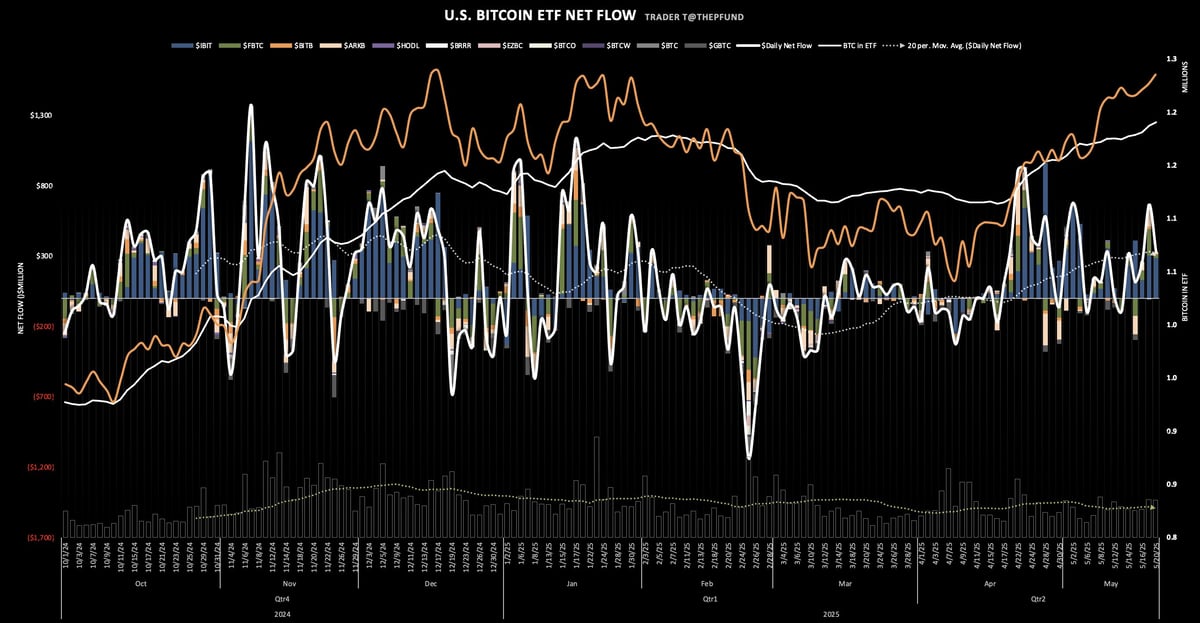 지속적인 순유입 흐름을 이어가고 있는 미국 비트코인 현물 ETF (출처: @thepfund, X)