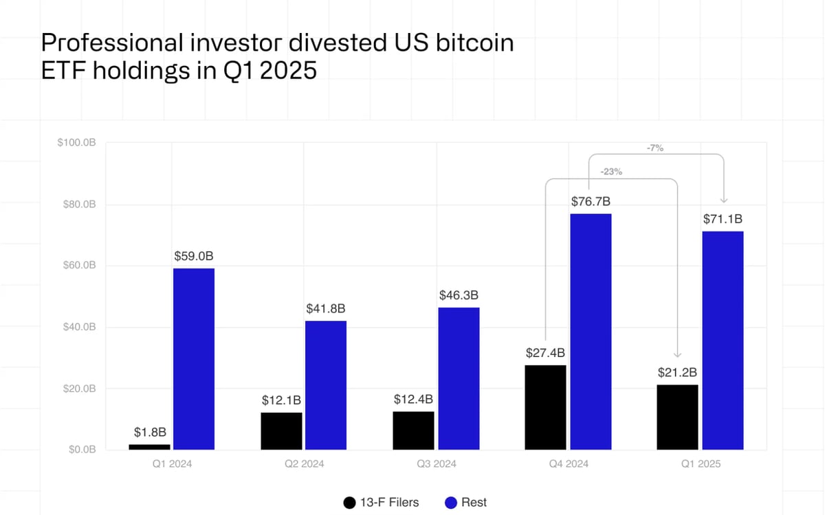 1분기 기관 보유 BTC ETF 23% 감소…“실제 매도보다 평가손실 영향”